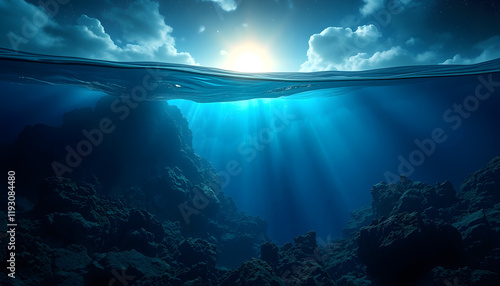 Fototapeta premium earth went underwater of the ocean, Side lit, with white tones
