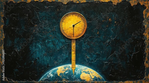 Naklejka premium Earth with a clock and thermometer symbolizing the countdown to climate disaster and the pressing need for environmental action