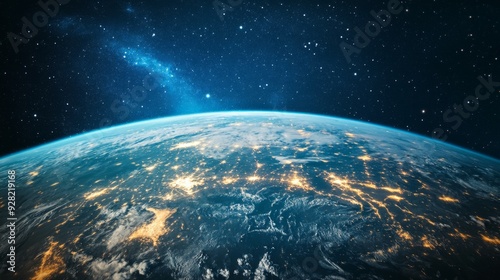 Obraz premium Earth with city lights at night seen from space.