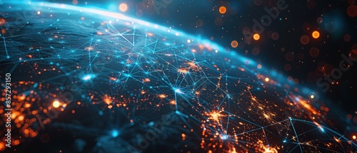 Fototapeta premium Earth with glowing connection lines and a digital data background, showcasing...