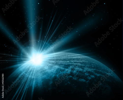 © Victoria, Fototapeta premium Earth with Rising Sun