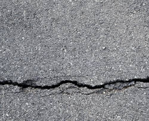 © Win Nondakowit, Obraz premium Earthquake disaster background. Cracks of road surface. Broken tarmac backdrop. Asphalt pavement damage.
