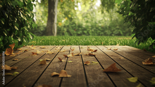 © Fatim, Fototapeta premium Earthy Elegance: Wooden and Stone Flooring in Outdoor Spaces.