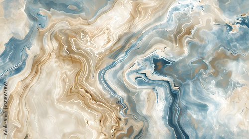 © tfk, Naklejka premium Earthy marble texture with swirls of beige and blue, generative ai
