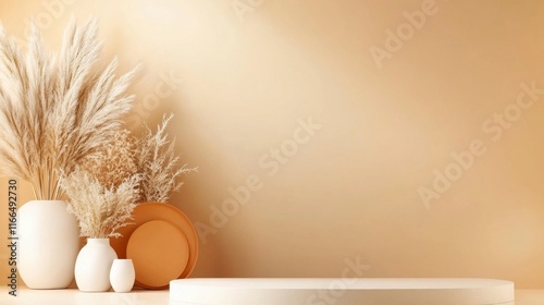 Fototapeta premium Earthy Tones: Pampas Grass in Minimalist Setting