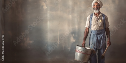 Naklejka premium East Indian Man Janitor Occupation Career Attractive Setting Generative AI