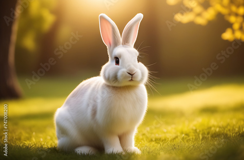 © Oxana, Fototapeta premium Easter background. Easter bunny in the garden