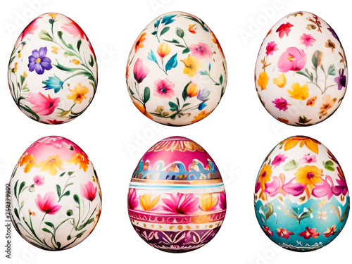 Fototapeta premium Easter background with realistic painted eggs isolated on a transparent background