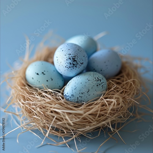 © DSimage, Obraz premium Easter basket with egg holiday background. Easter eggs beautiful colors
