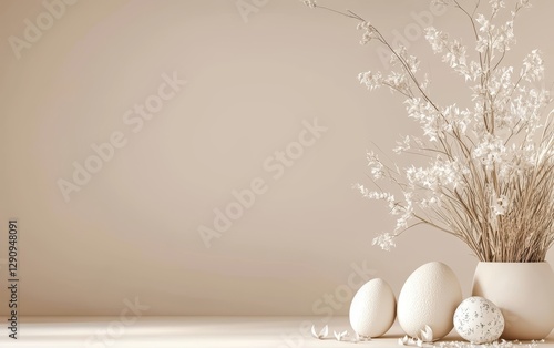 © Антон Федченко, Fototapeta premium Easter Beige 3d background minimalistic mockup with space for text