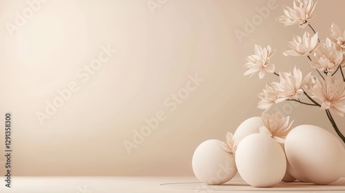 © Marina, Fototapeta premium Easter Beige 3d background minimalistic mockup with space for text