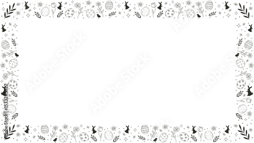 Fototapeta premium Easter border is being shown in flat design, featuring eggs and rabbits on...