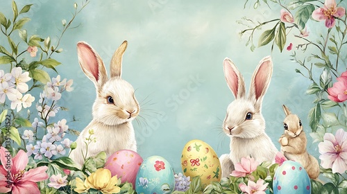 Fototapeta premium Easter Bunnies Eggs in Spring.