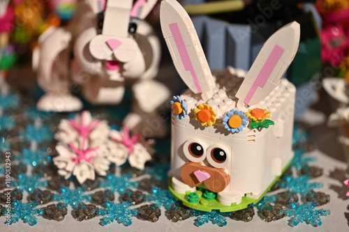 © Viktoriia Pletska, Fototapeta premium Easter bunnies made of Lego