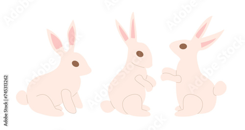 Obraz premium Easter bunnies set. Rabbits isolated on white background. Vector flat...