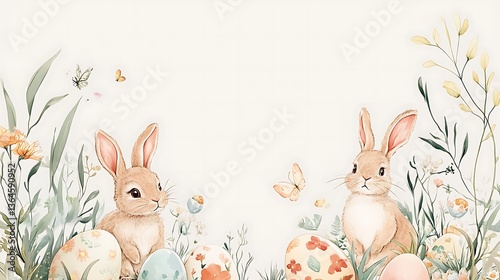 Fototapeta premium Easter Bunnies Spring Flowers Eggs. (5)