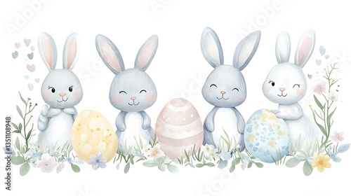 Fototapeta premium Easter bunnies with eggs, and flowers. (8)