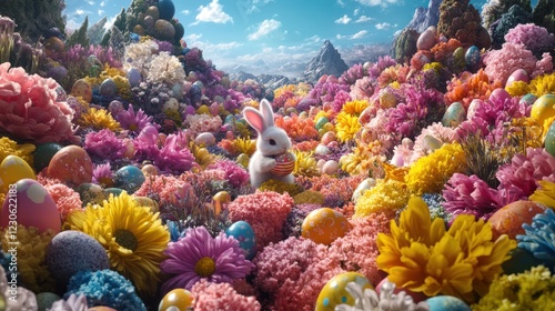 © Penatic Studio, Obraz premium Easter Bunny Amidst Colorful Flowers and Eggs