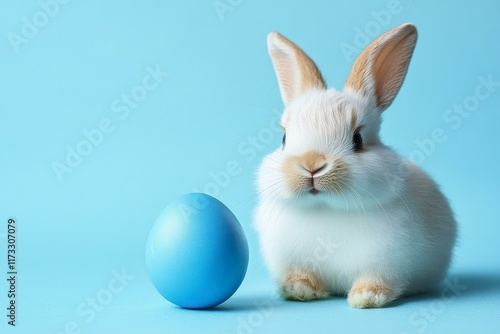 © Adobe Contributor, Obraz premium Easter Bunny and Blue Egg on a Light Blue Background