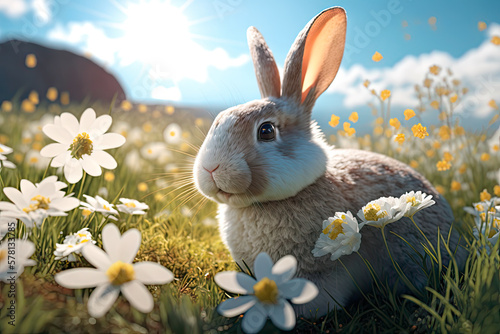 © Proxima Studio, Fototapeta premium Easter bunny and easter eggs on the green meadow, generative AI