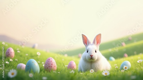 © ulum, Fototapeta premium Easter Bunny and Eggs in a Spring Meadow