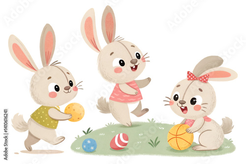 Fototapeta premium easter bunny and eggs on transparent background