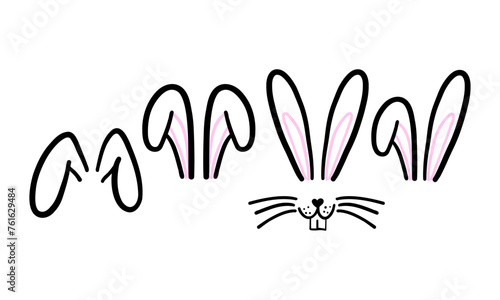 © Zsuzsanna, Obraz premium Easter bunny ears doodle set in simple modern style. Happy Easter.