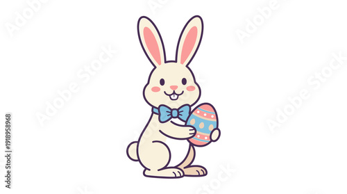 © Halim Karya Art, Fototapeta premium Easter Bunny Egg Bow d flat vector isolated white background