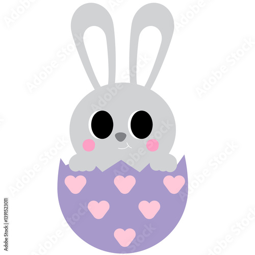 Obraz premium Easter Bunny, Eggs, Basket, Heart, Cute, Cartoon, Holiday, Spring, Festive,...