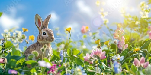 Fototapeta premium Easter Bunny Figurines in a Garden Setting. AI generative