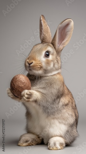 © Niroa, Obraz premium Easter Bunny Holding Chocolate Egg