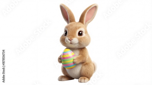 © Md Islam, Obraz premium Easter bunny holding colorful egg