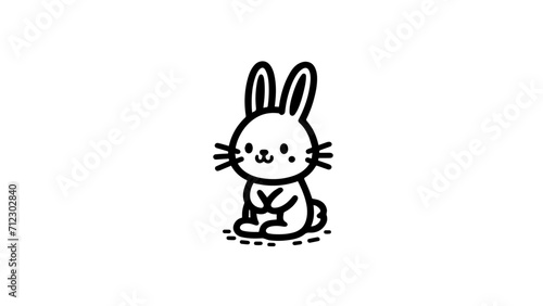 Obraz premium Easter bunny illustration. Black and white easter bunny illustration with easter eggs. simple cartoon bunny in celebration for easter with no fill