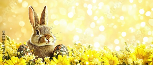Fototapeta premium Easter Bunny in a Yellow Flower Field