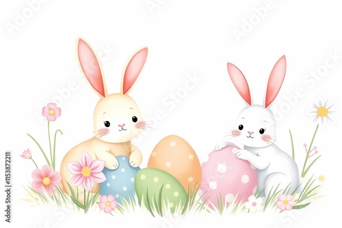 Obraz premium Easter Bunny Pair with Pastel Eggs