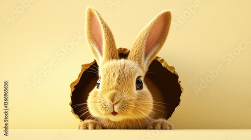 © yuan, Obraz premium Easter Bunny Peeking from Hole