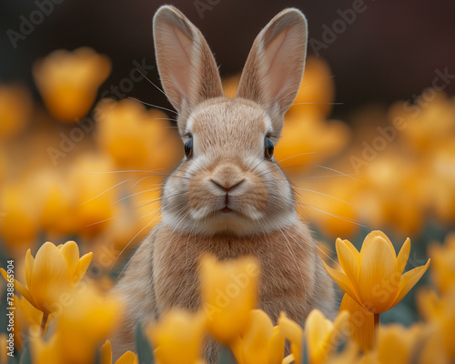 Fototapeta premium Easter Bunny Surrounded by Flowers