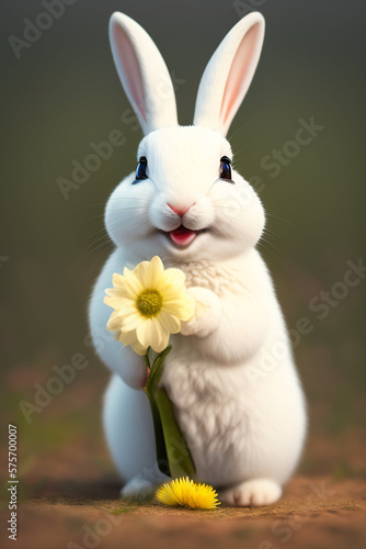 Obraz premium Easter bunny with yellow flowers. Generative AI.