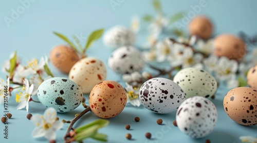 © SHI, Obraz premium Easter card background in spring - Easter bunny and egg scene