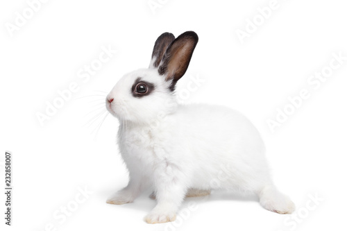 © Aleksandr Baluev, Obraz premium Easter Card Design. White funny bunny rabbit portrait isolited on white background. Rabbit silhuette.