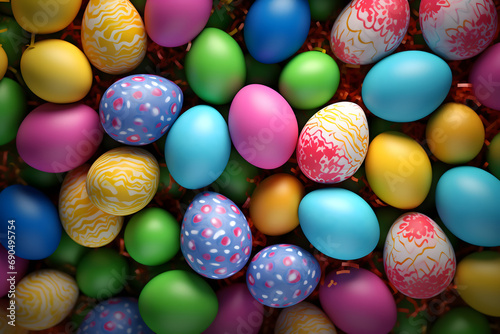 © fadi, Obraz premium easter card, easter bunny with eggs, easter eggs and flowers, easter eggs in a basket, easter eggs and flowers on a white background, easter wall paper and background for social media