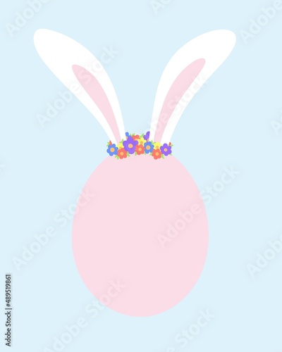 © Eva Grishina, Fototapeta premium Easter card, Easter egg with rabbit ears, congratulations for Easter holiday. egg color pink