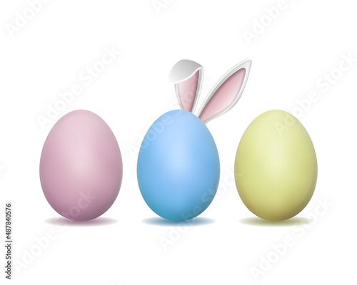 Fototapeta premium Easter card with pale pastel Easter eggs and Bunny ears.