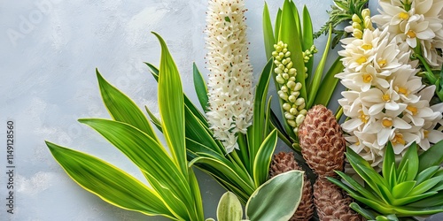 Obraz premium Easter celebration background featuring vibrant spring flowers and natural elements