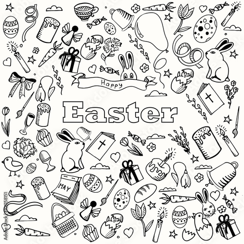 © toricheks, Obraz premium Easter coloring book design vector line art