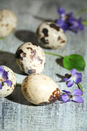Obraz premium Easter composition with violets flowers in egg shells