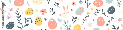 © Panyamethi, Obraz premium Easter 2D Vector Pattern elements Easter theme featuring repeating elements like Easter eggs bunnies flowers and baskets