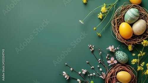 Fototapeta premium Easter Dark Green Background: Interweaving Nature and Hope, Rendering a...