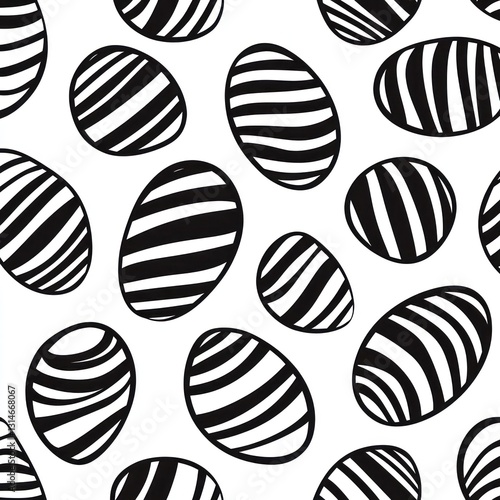 © Khalida, Obraz premium Easter design, striped eggs, hand-drawn vector on white.