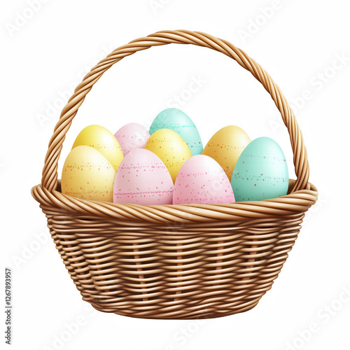 Naklejka premium Easter egg basket with colorful decorated eggs, festive holiday symbol....